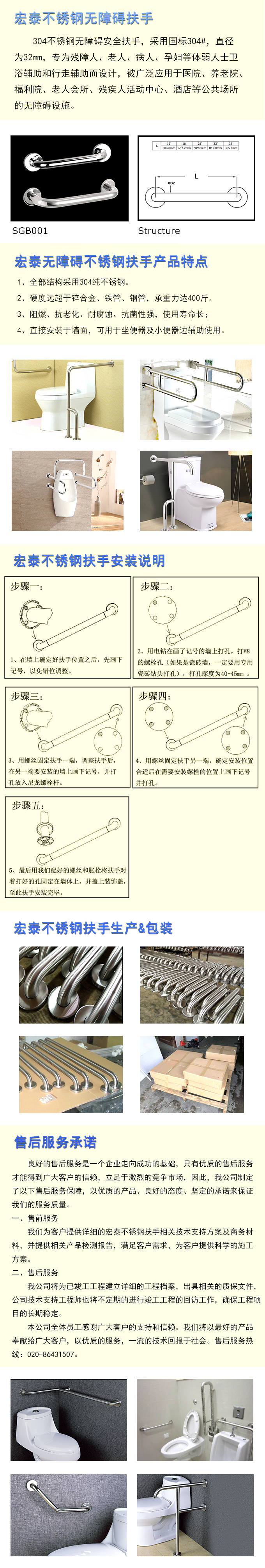 2、表面处理:镜面、砂光、滚花SGB001D:一字型不锈钢扶手