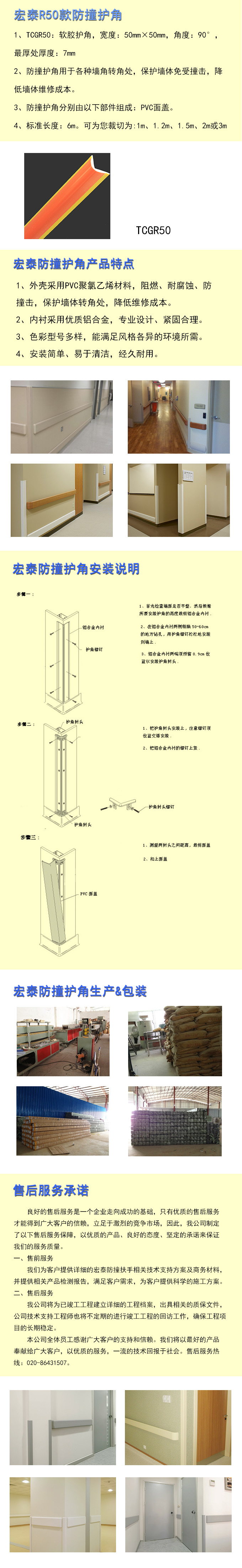 宏泰医用防撞护角 1.外壳采用PVC高聚氯乙烯材料,抗菌耐磨,保护墙体转角处,降低维修成本; 2.防撞护角具备阻燃抗菌的特性,易于清洁,色彩型号多样,能满足风格各异的环境所需; 3.安装维护保养方便,经久耐用; 4.适用于医院、福利院、养老院、宾馆等公共场合。