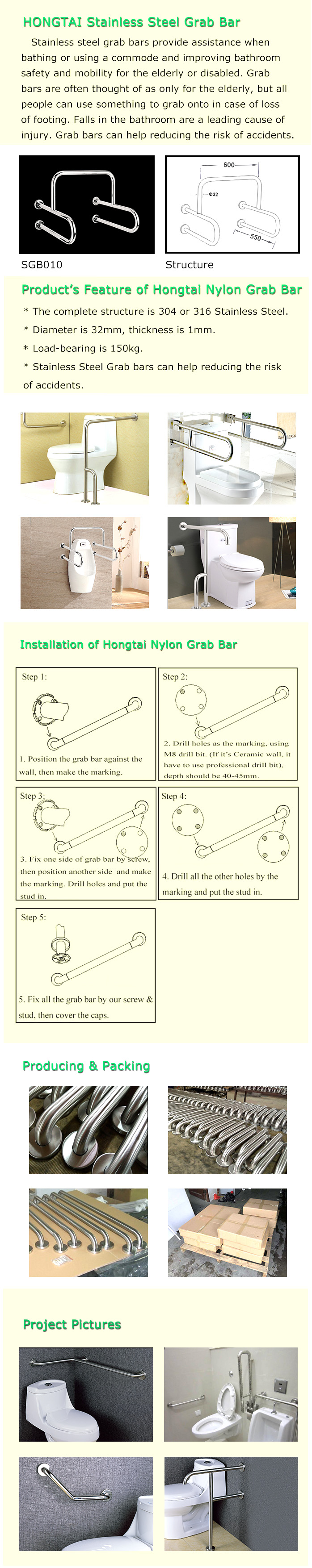 * SGB010 is used on the top of the urinary, offering a full range of safe grasp which assist users from wet flooring, etc.