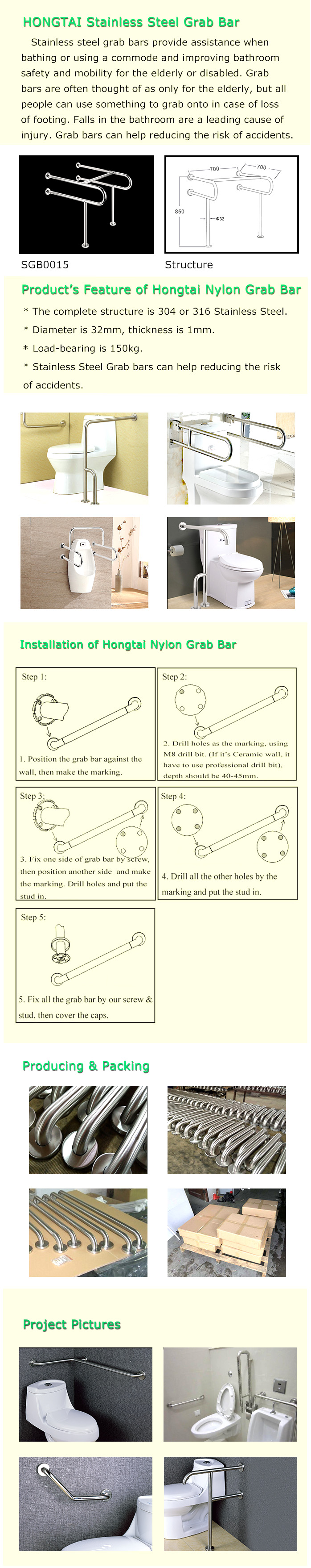 * SGB015 is used on the top of the urinary, offering a full range of safe grasp which assist users from wet flooring, etc.